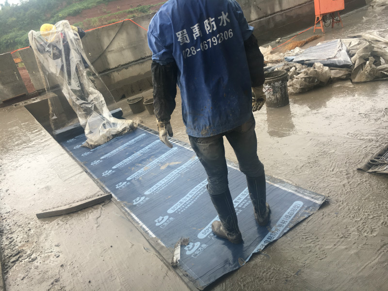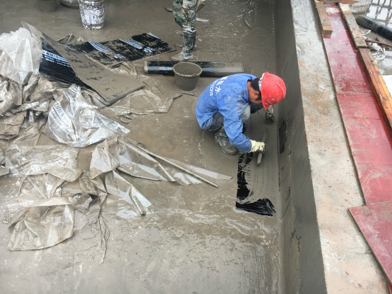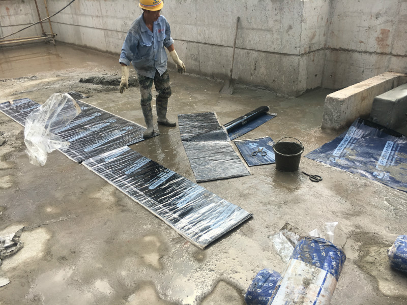 本公司2018年10月承接的大英碧桂園地下室防水工程施工業務,大英碧桂園地下室防水按照圖紙設計采用高分子自粘防水卷材(反應粘型)施工,承臺采用水泥基滲透結晶型防水涂料涂刷。