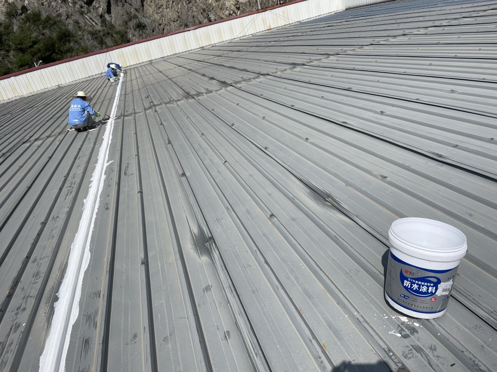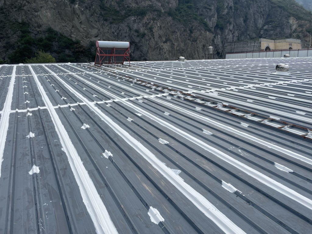 我公司承接的位于四川省阿壩藏族羌族自治州汶川縣威州鎮沙窩子阿壩州普蘭特二手車交易市場有限公司廠房彩鋼頂防水補漏工程,這個工程是鋼結構廠房,以前屋頂有多處漏雨的情況,由于漏水點位較多,業主方之前找公司在廠房屋頂又全部滿加蓋了一層彩鋼瓦,但是經過了一段時間下雨的時候還是多處漏雨的情況,實在沒辦法了,找到了我們,我們根據現場實際查勘的情況,我們推薦采用SYR金屬屋面防水系統解決這個彩鋼頂漏雨難題,彩鋼搭接縫及螺絲釘部位先涂刷SYR金屬屋面專用防水涂料然后鋪貼專用縫織聚酯布,再涂刷SYR金屬屋面專用防水涂料,待干后表面再涂刷SYR金屬屋面專用防水涂料。業主方經過考慮和考察之后決定采用我們的方案施工,事實證明我們施工之后下雨檢測效果很好,采用SYR金屬屋面防水系統施工的彩鋼頂下雨不漏雨了。