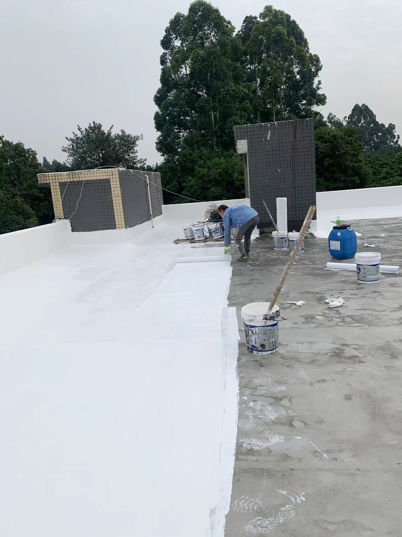 隨后,我們在整個屋面上滿滾涂刷Ⅰ型聚合物水泥防水涂料,以形成均勻的防水層。接著,又滿鋪貼縫織聚酯布,再次滿滾涂刷Ⅰ型聚合物水泥防水涂料。這種反復的涂刷和鋪設,使得防水層更加均勻緊密,有效地提高了屋頂的防水性能。