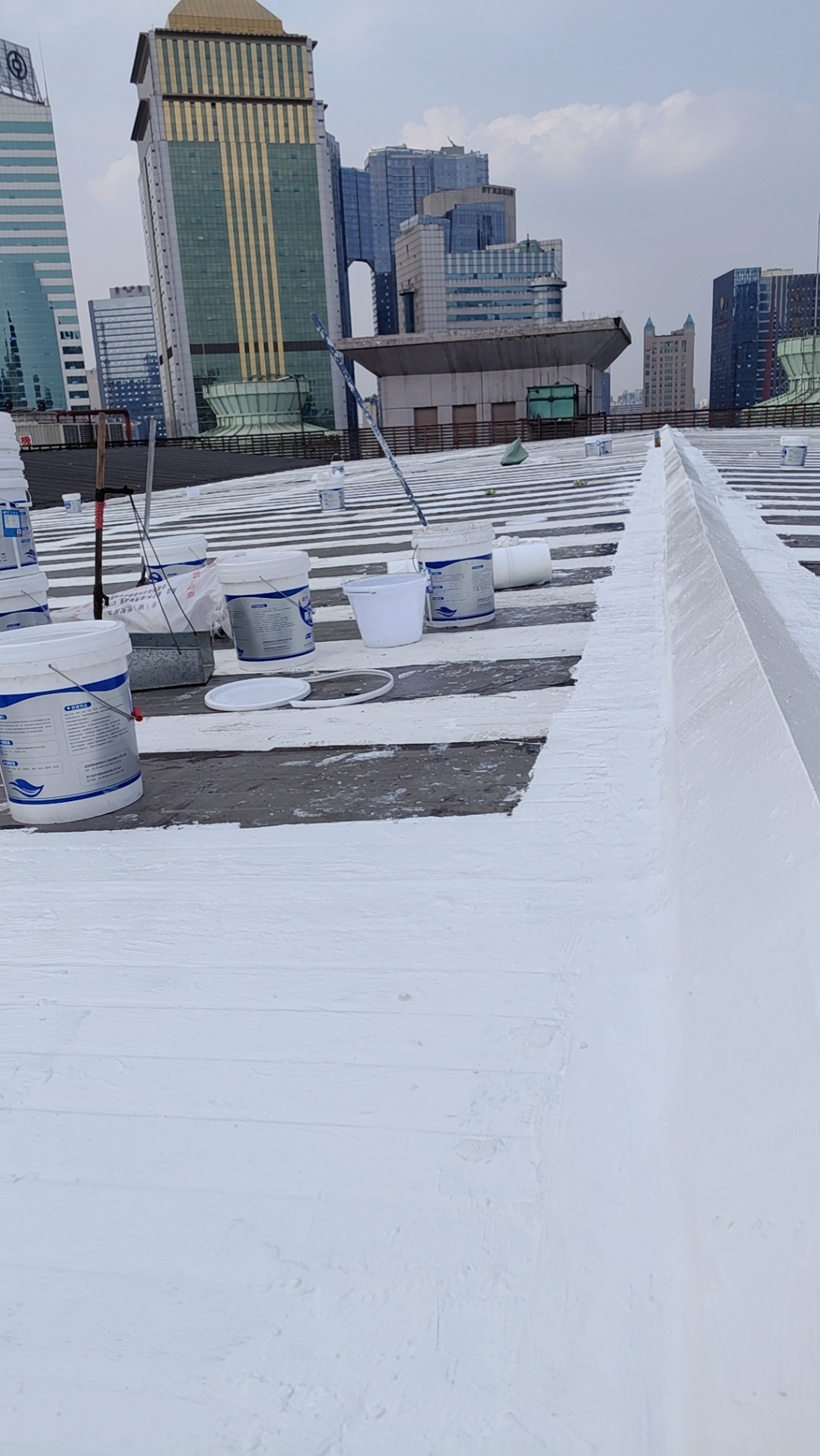 在完成關鍵部位的防水處理后,公司對整個彩鋼頂面進行了滿滾涂兩遍SYR金屬屋面專用防水涂料的操作。這一步驟不僅進一步加強了彩鋼頂的防水性能,還提升了其防腐能力,有效延長了彩鋼頂的使用壽命。