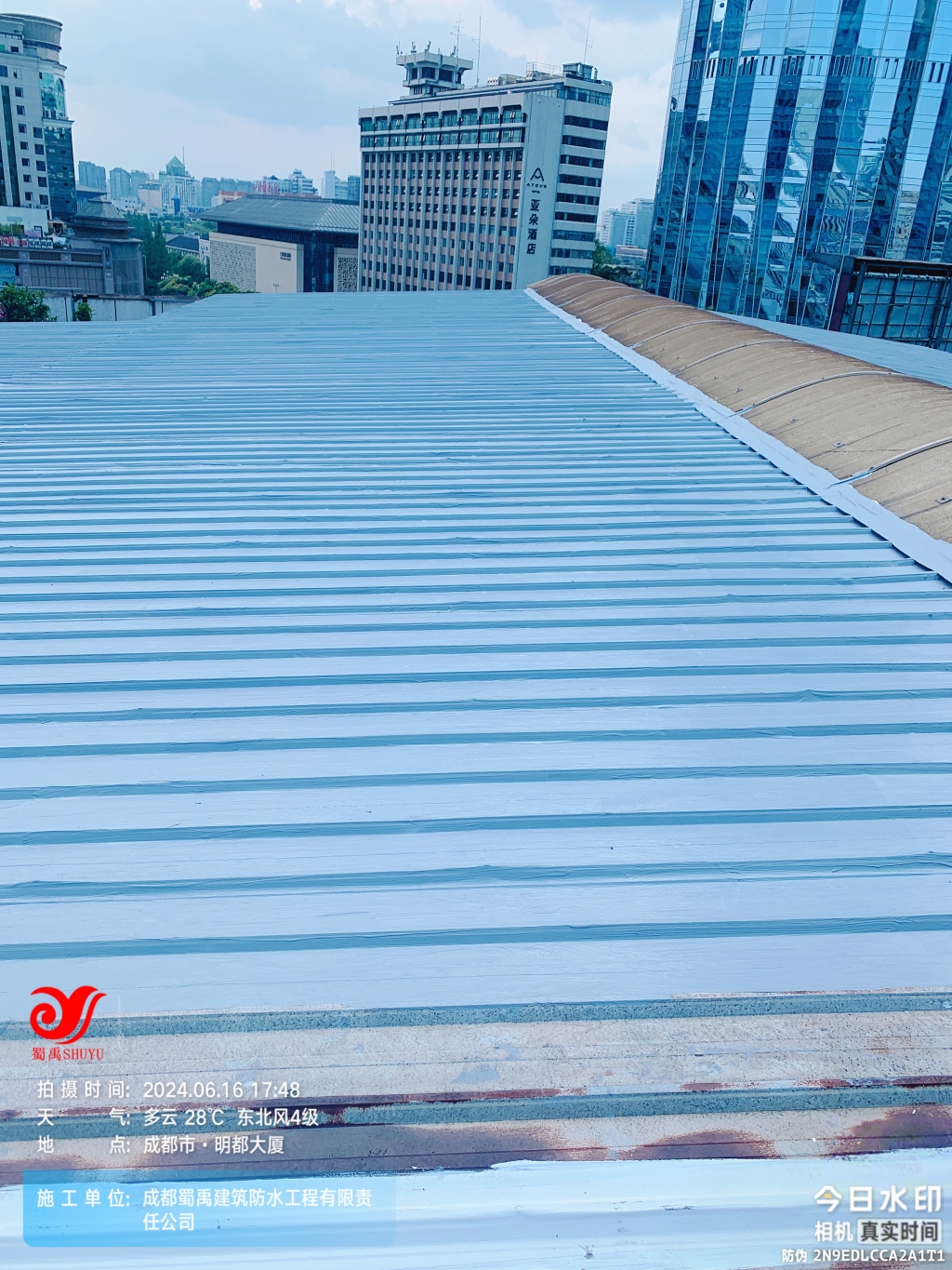 【成都蜀禹建筑防水工程有限責任公司工程案例宣傳】—— 明都大廈玻璃頂與彩鋼頂防水防腐翻新,重塑建筑防護新篇章