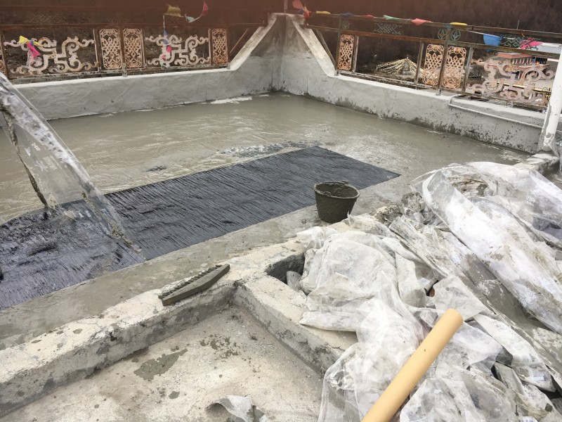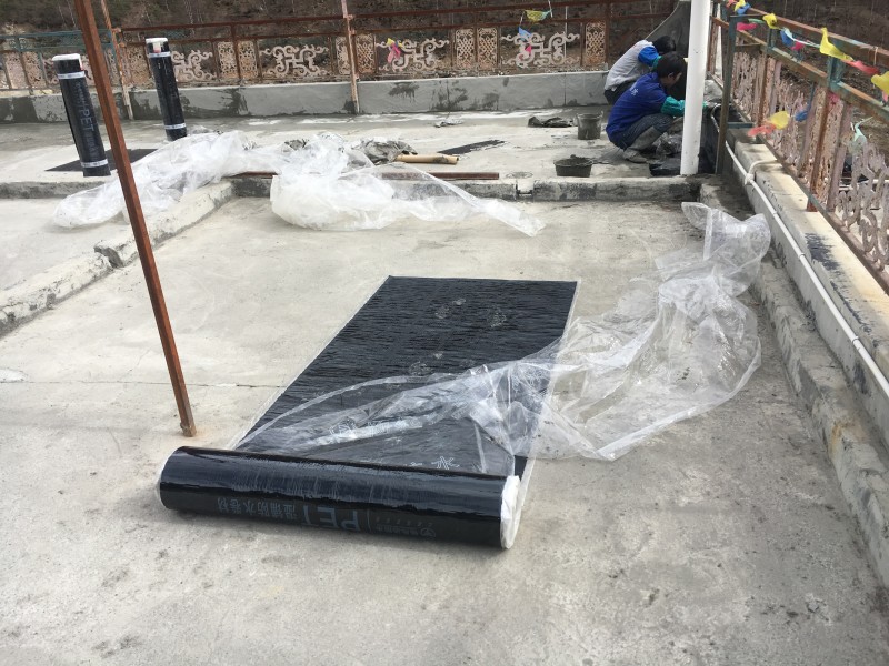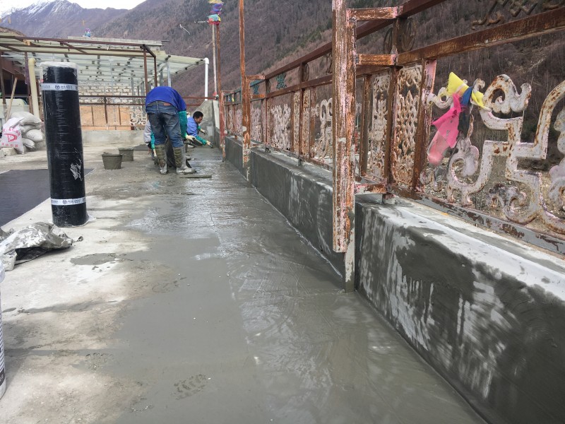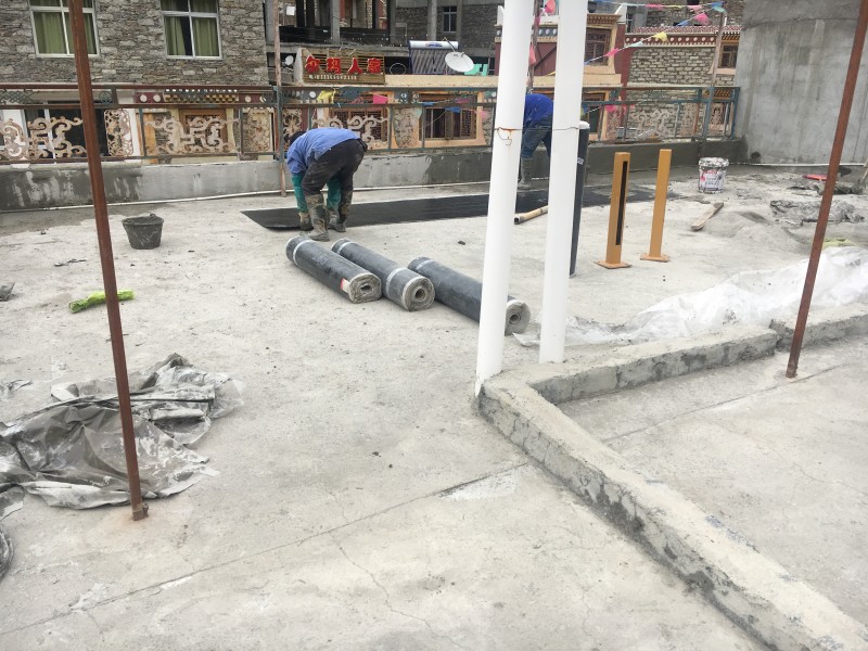 阿壩藏族羌族自治州四姑娘山天晴客棧屋頂防水工程,此為高原地區氣候,一年中有三分之一時間是冰雪覆蓋,普通的防水材料無法耐住長時間的冰雪侵蝕,屋頂之前做的普通的防水卷材,但是沒過多久,屋頂的防水卷材就被冰雪侵蝕開裂、起皮、脫落了,就完全無法起到防水作用,本公司對于高原地區長時間冰雪霜凍氣候環境的防水工程施工有充足的經驗,我們采用了能耐低溫-15℃的濕鋪反應粘高分子防水卷材施工,屋頂防水施工后經歷冬季冰雪侵蝕完全沒有問題。