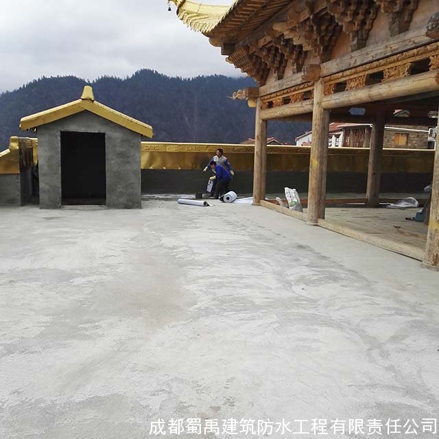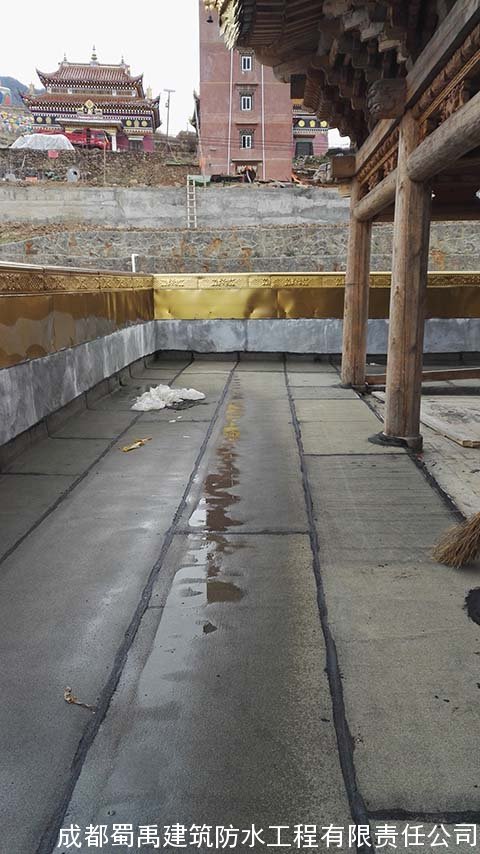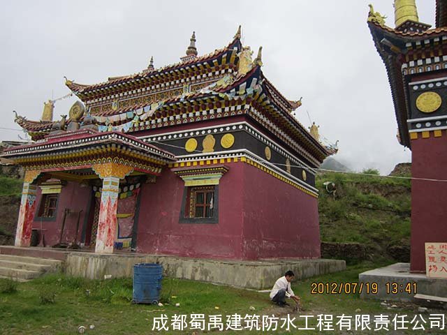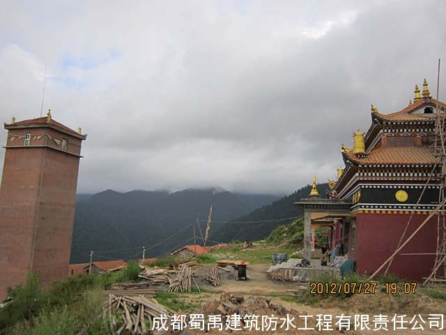 2012年西巴寺新建了蓮花生大殿,我們于2012年7月對(duì)蓮花生大殿的屋頂進(jìn)行防水工程施工處理,處理了之后效果很好,能夠耐住高原地帶的長(zhǎng)時(shí)間積雪低溫環(huán)境,比之前其他的人做的防水的效果好,2016年4月的時(shí)候西巴寺修建大雄寶殿,由于之前我們?cè)谖靼退伦龅奈蓓敺浪こ绦Ч茫栽俅巫屛覀冏隽宋蓓敺浪こ蹋兄x西巴寺對(duì)我們的信任,我們也認(rèn)真的對(duì)大雄寶殿的屋頂平臺(tái)防水工程進(jìn)行了施工。