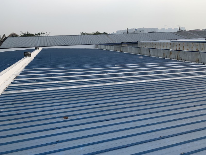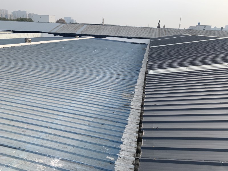 四川省歐朗仕汽車配件有限責(zé)任公司彩鋼頂廠房位于成都市雙流區(qū)羅漢路,此次處理的廠房為廠區(qū)內(nèi)一、二、四、五、六、七、住宿樓的屋頂防水,彩鋼頂漏水情況以前表現(xiàn)出的現(xiàn)象是,在室內(nèi)看到是兩邊靠近水溝的位置,下雨的時候從水溝位置漏水下來,后來將水溝全部進行防水處理了,結(jié)果下雨的時候還是漏水,搭著梯子仔細檢查才發(fā)現(xiàn),彩鋼頂頂部的個別縫隙也在漏水,水從彩鋼頂斜坡上面漏水到了彩鋼瓦的夾層中,水在夾層中順著斜坡流至斜坡底端才漏下來,結(jié)果就是從靠近水溝的位置漏下來,如果不搭著梯子的話,從下面遠遠觀看,就以為是水溝在漏水,后來將漏水位置的上面斜坡部位彩鋼接縫進行防水處理了,再下雨就沒有漏水現(xiàn)象發(fā)生了,所以由于彩鋼頂?shù)奶厥庑裕赡軙诓输擁斝逼聝?nèi)順著下滑至底端靠近水溝位置漏水,所以處理彩鋼頂漏水一般要將漏水位置對應(yīng)的上面斜坡位置都進行防水處理才行。